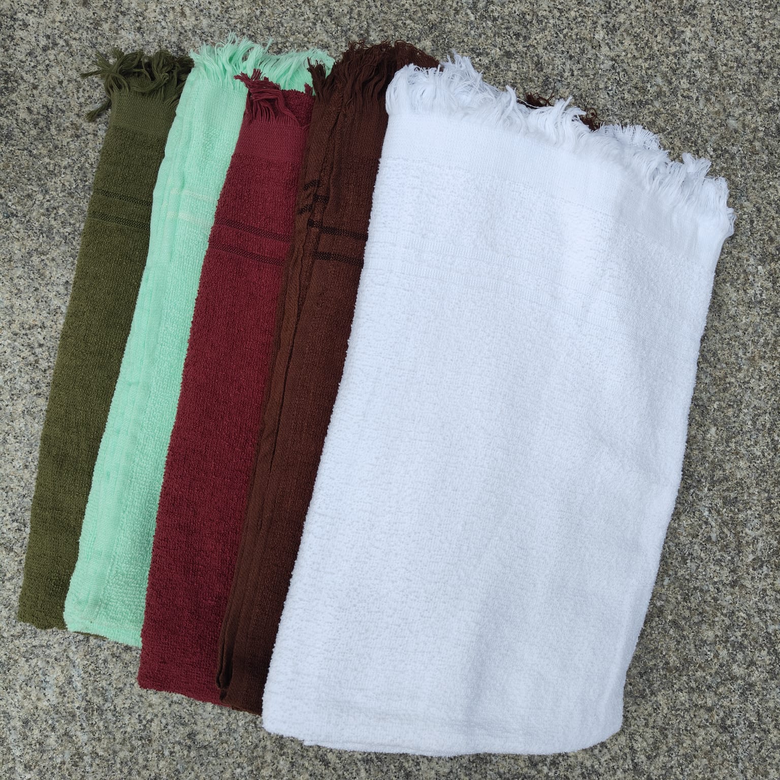 Discover our 100% cotton travel towels (75x150cm) at Taya collection. Available in cyan, forest green, brown, burgundy, and white. Perfect for travel—compact, absorbent, and quick-drying.